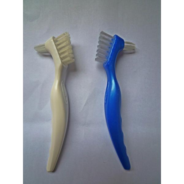 hard & fluent handle for cleaning fake teeth easily ,two sizes of bristal for cleaning thoroughly